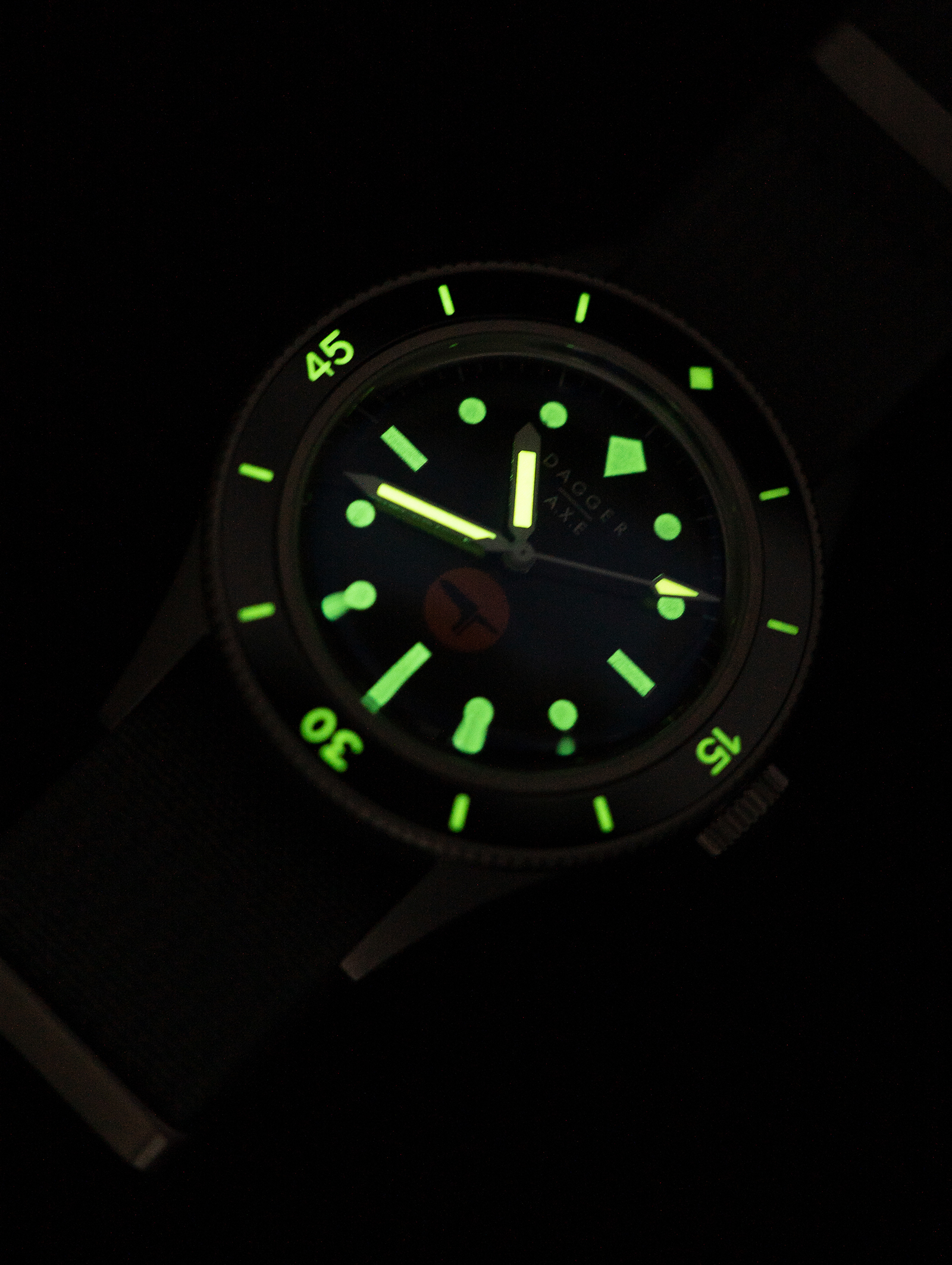While some watches shine in the sun, the DAGGER AXE DG-O02 "Spectre" is built for the deep. Inspired by the strict military specifications of 1960s combat divers, this timepiece trades vintage warmth for cold, functional precision.