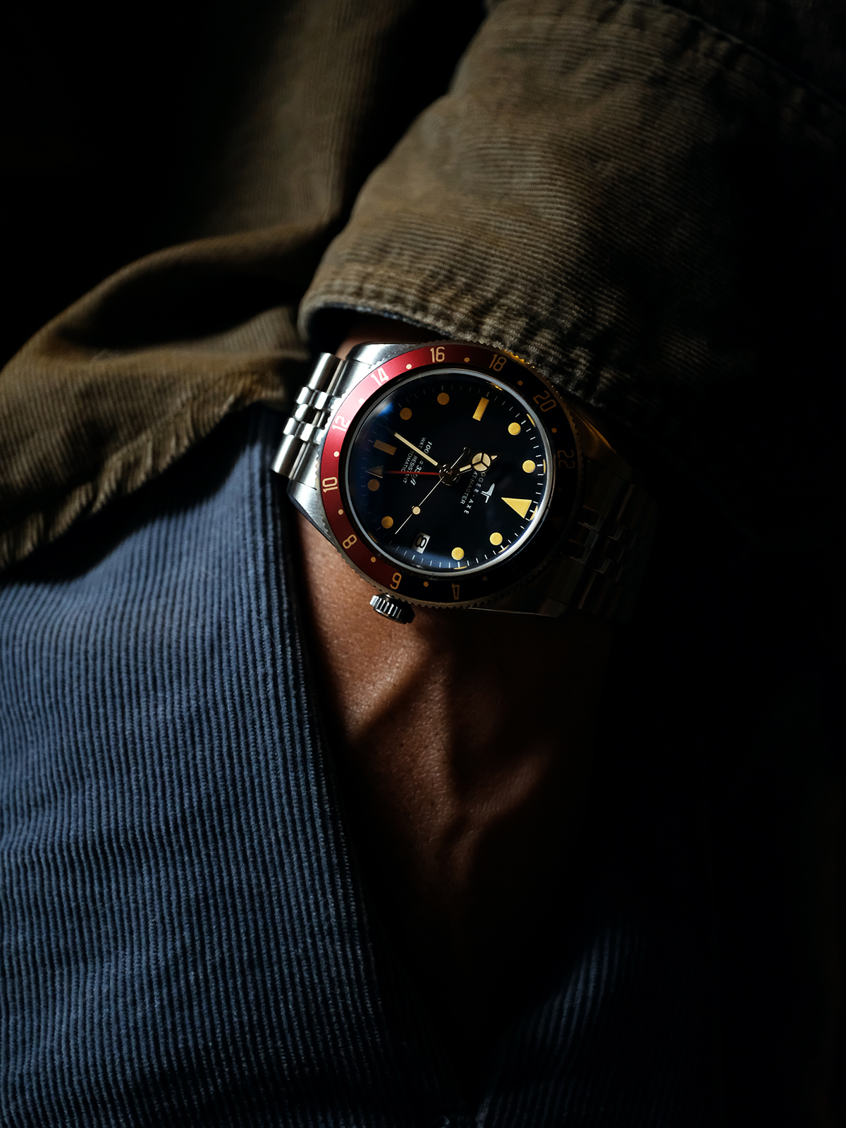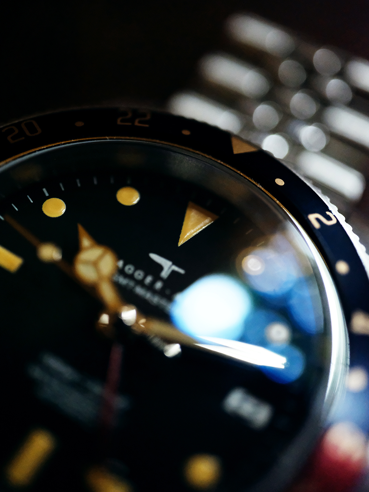 Since the original is no longer available, we created the "Voyager" for enthusiasts who appreciate the classic "Bakelite-style" aesthetic and the clean, crown-guard-less silhouette of 1954. We captured the warm, vintage tone of the indices and the classic Red/Blue bezel, giving you the feeling of a watch that has traveled the world.